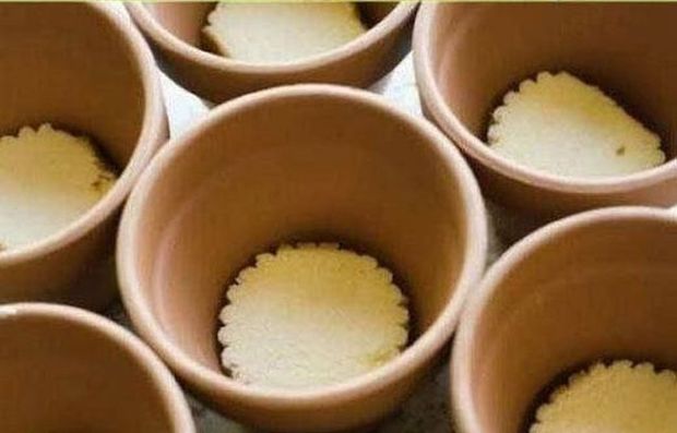 3. Kuchen auf den Boden des Blumentopfes legen.