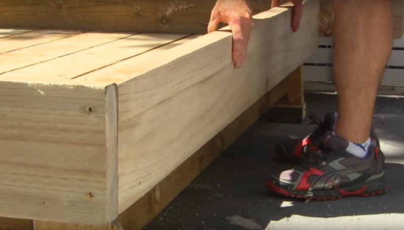 1. Als erstes baut er ein Bettgestell aus Holz.